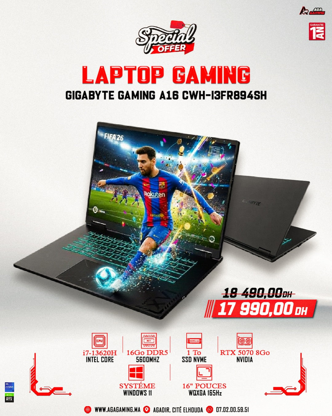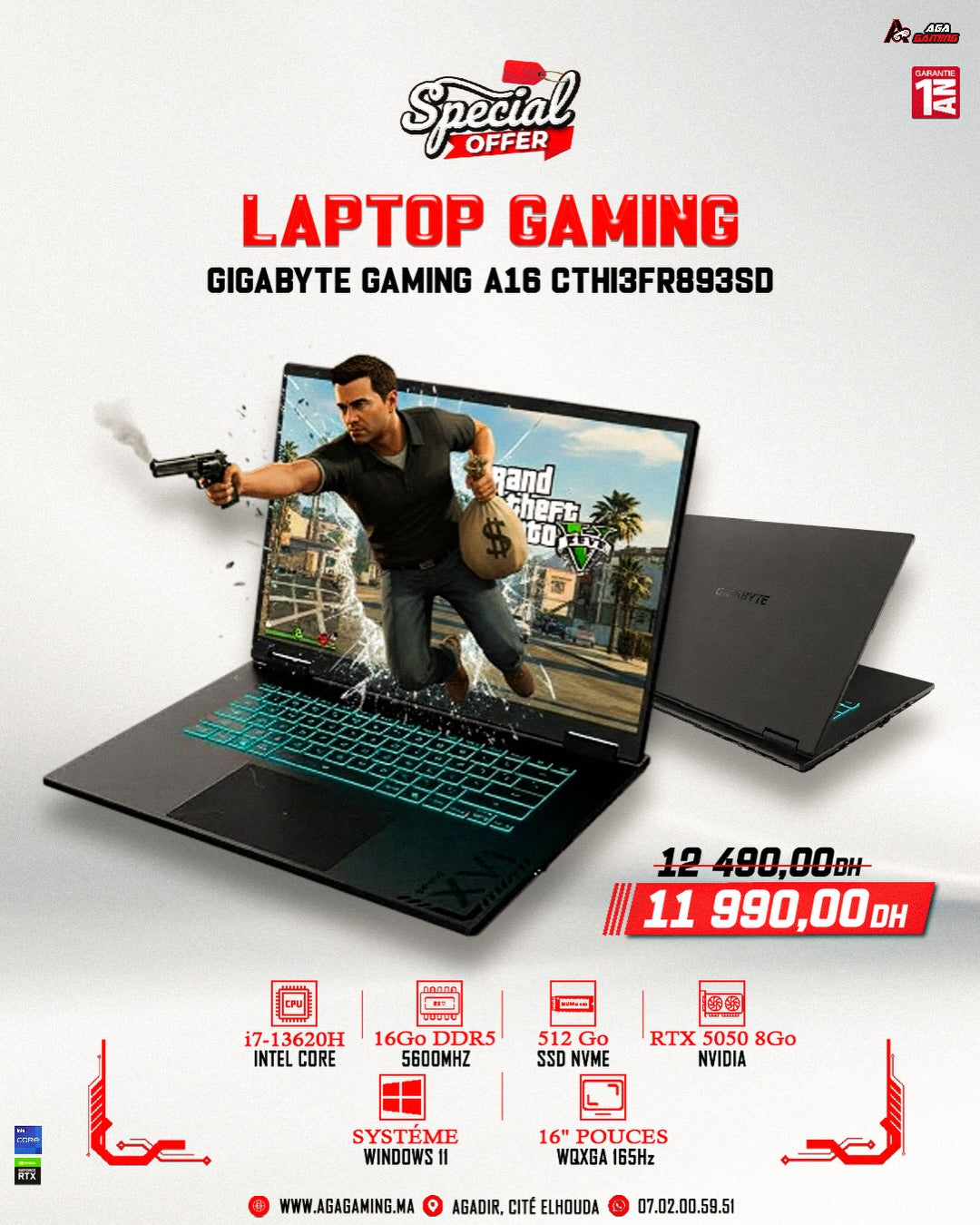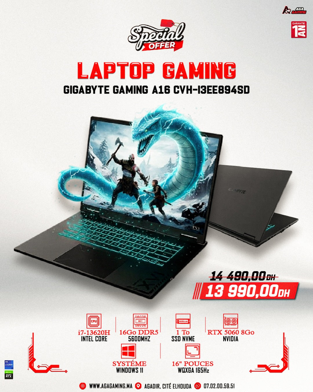 GIGABYTE GAMING A16 CVHI3FR894SD Intel i7-13620H/16GB DDR5/1TB SSD/RTX 5060 8G/16″ 165Hz