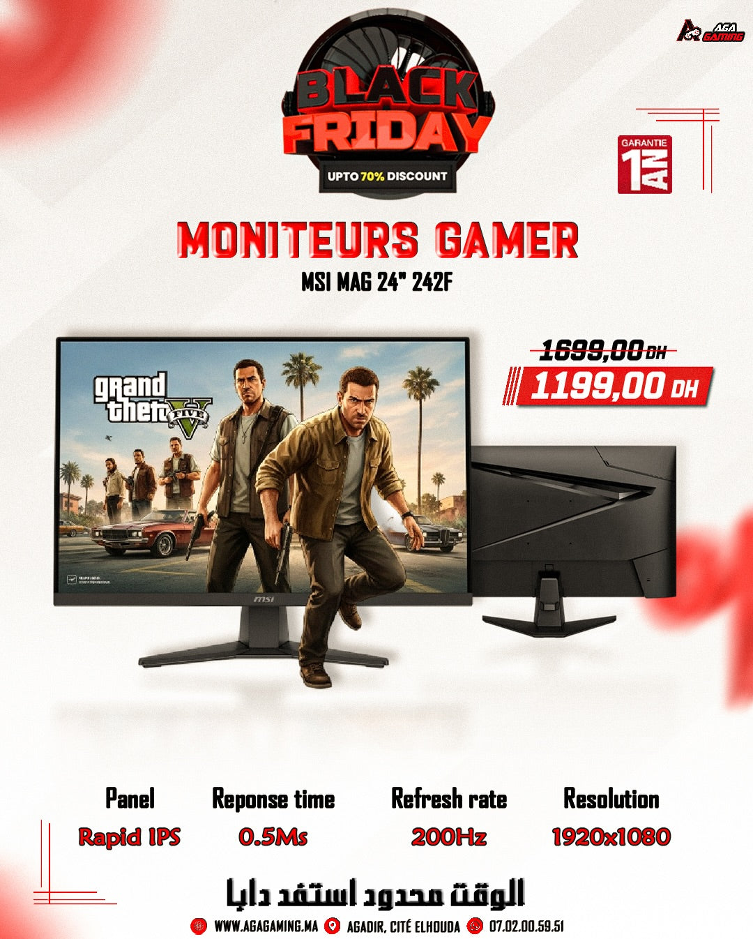 MSI MAG 242F 24" 200Hz 0.5ms Rapid IPS