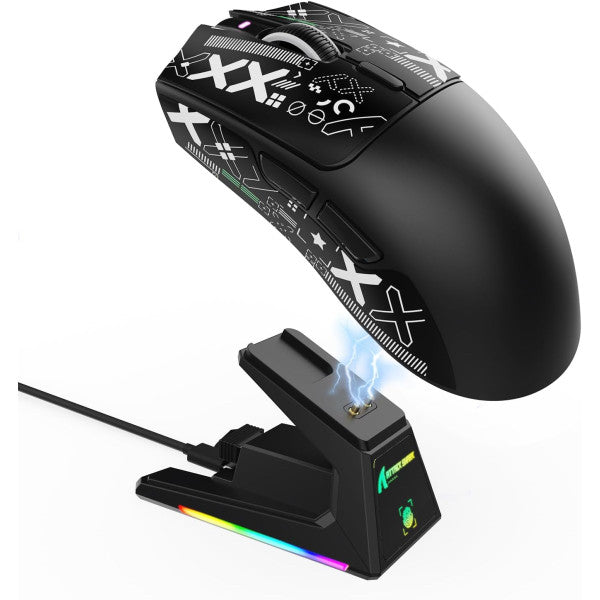 Station de charge tactile RVB – Charge instantanée, style en un clic. Découvrez le futur de la charge. La MAMBASNAKE x ATTACK SHARK X1 est dotée d'une station de charge magnétique avec éclairage RVB et d'un panneau de commande tactile : un simple toucher suffit pour changer d'effet, sans logiciel. La station offre une charge rapide et fluide et un élément visuel dynamique pour votre configuration. Que vous soyez en plein combat ou plongé dans vos feuilles de calcul, votre souris reste chargée et toujours élégante.