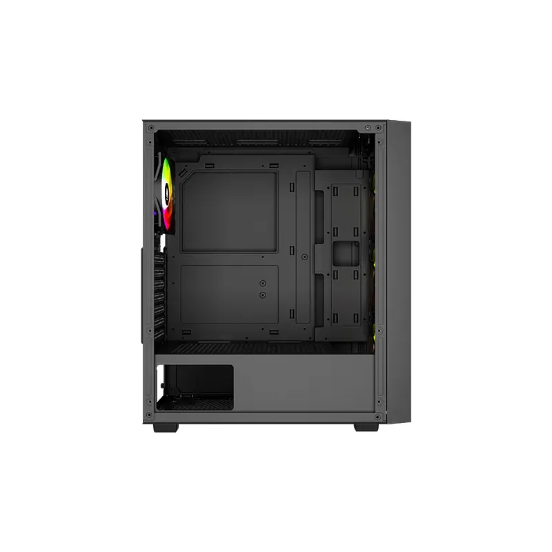 La fenêtre latérale en verre trempé vous permet de mettre en valeur l’intérieur de votre PC, tout en offrant une vue claire et stylée de votre configuration. Ce boîtier gamer est conçu pour optimiser la circulation de l’air grâce à ses 4 ventilateurs de 120 mm fournis. Ces ventilateurs assurent un refroidissement efficace, même lors de sessions de gaming intenses.