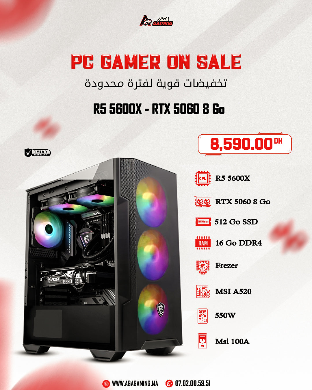 - PC Gamer R5 5600X - RTX 5060 8 Go PC Gamer R5 5600X - RTX 5060 8 Go