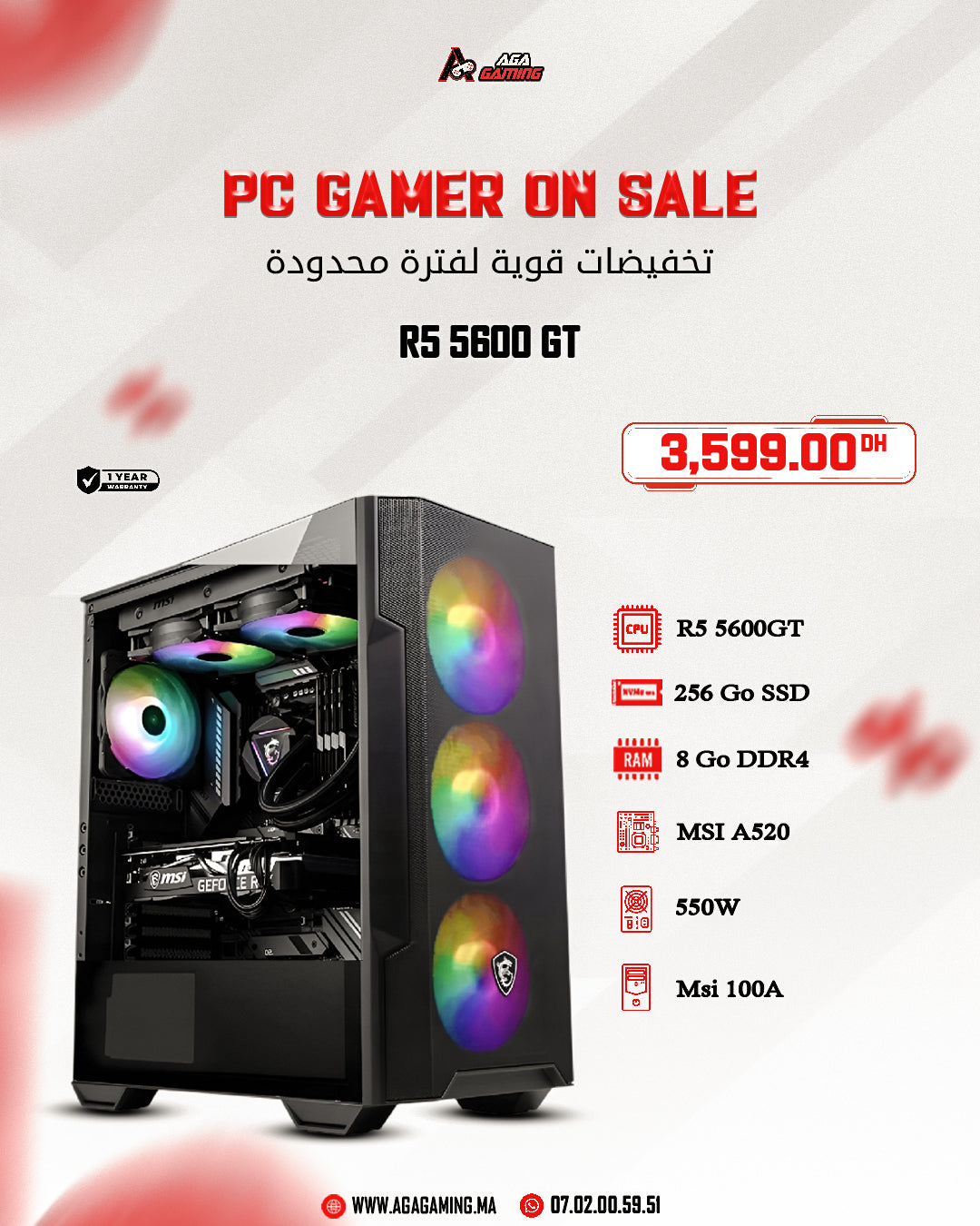 PC Gamer entrée de gamme proposé par AGAgaming, idéal pour le gaming léger, e-sport et usage quotidien fluide.