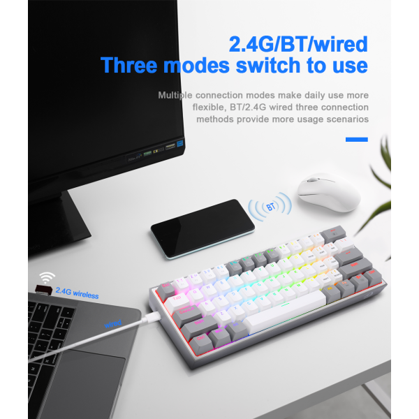 - Redragon K616 Fizz PRO 60% Wireless RGB Red Switches (White/Gray) Redragon K616 Fizz PRO 60% Wireless RGB Red Switches (White/Gray)