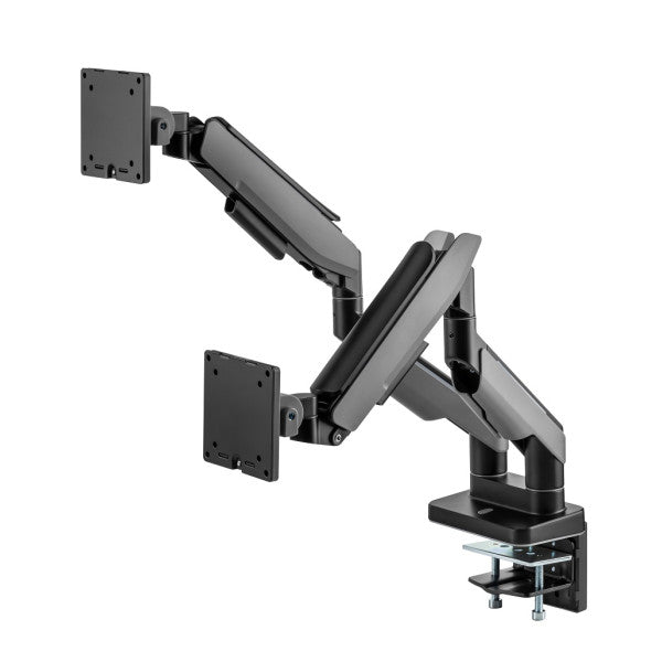 Le XTRMLAB L420C-16TDL-BDG est un support de bureau Premium pour 2 écrans PC jusqu'à 35 pouces (et 20 kg). Élégant et robuste, il est efficace, simple à utiliser et permet d'optimiser facilement l'ergonomie de votre poste de travail. Ce bras articulé pour 2 moniteurs prend en charge les écrans de 17 à 35 pouces (y compris les écrans incurvés), d'un poids compris entre 2 kg et 9 kg chacun. Il est en outre compatible avec les systèmes de fixation VESA 75 x 75 mm et 100 x 100 mm.