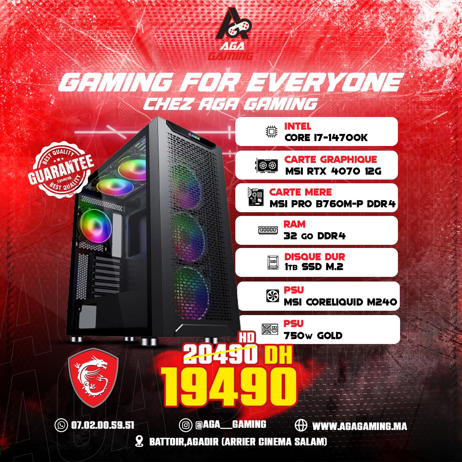 - Carte Graphique : MSI GeForce RTX 4070 12GB, idéale pour les graphismes en ultra-haute définition et dotée de technologies de ray tracing de dernière génération.