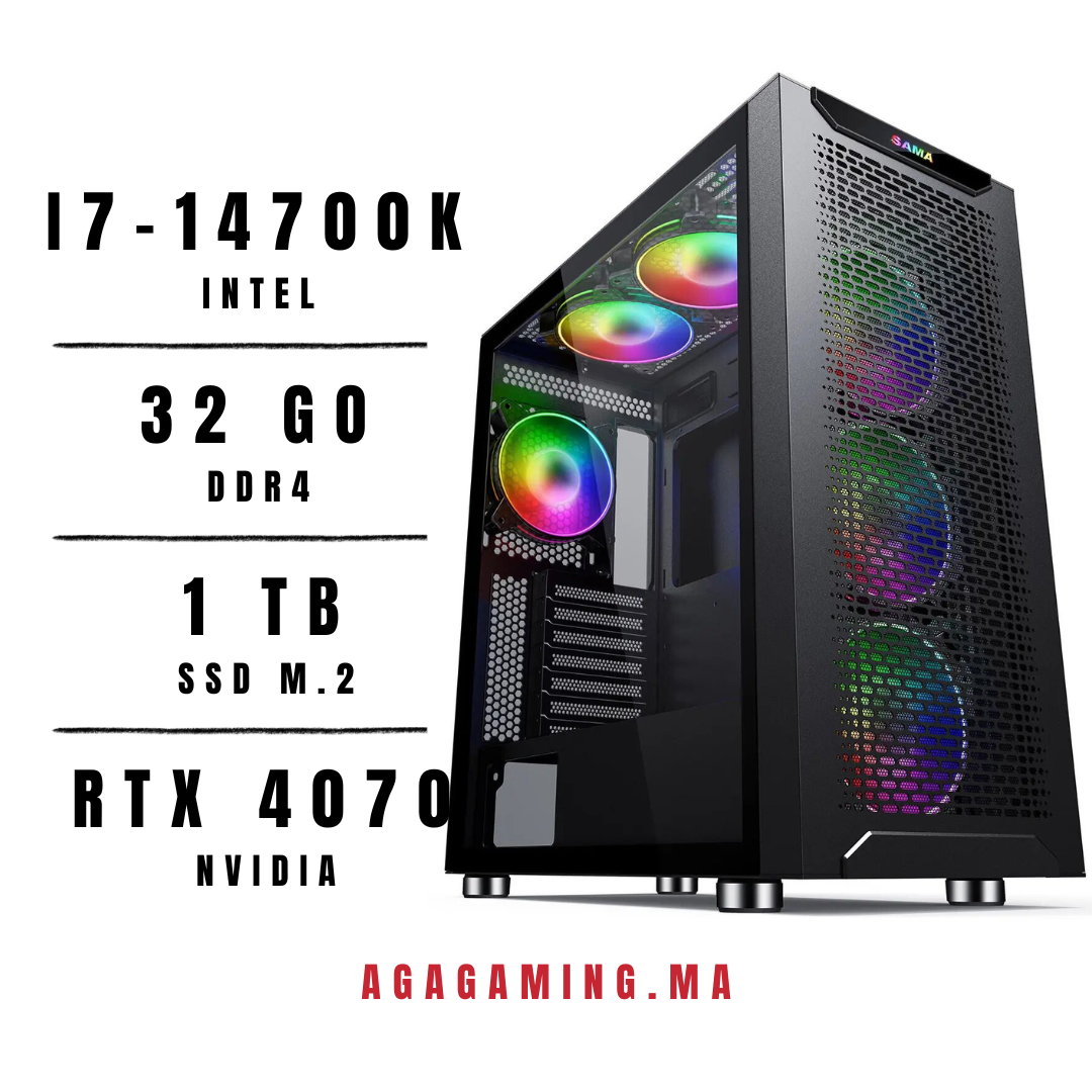 Découvrez le summum de la performance avec notre PC Gamer équipé d'un processeur Intel i7-14700K et d'une carte graphique MSI RTX 4070 12GB. Conçu pour les amateurs de technologie et les gamers exigeants, ce système offre une puissance exceptionnelle pour vos jeux, réalité virtuelle et multitâches intensives.
