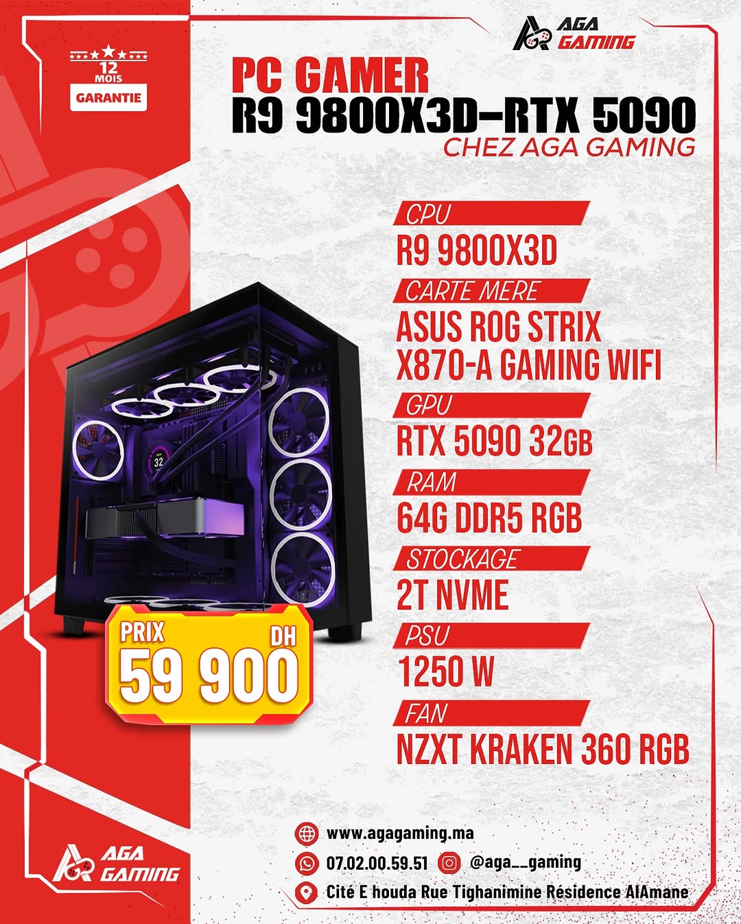 Parfaite pour les gamers exigeants, les streamers professionnels et les créateurs de contenu 3D ou vidéo à la recherche d'une machine qui répond à toutes les attentes de performance, de fluidité et de style.