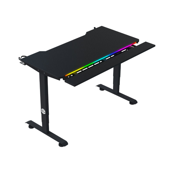 Bureau gamer SG SGD-M140 NOIR RGB – hauteur réglable manuellement, éclairage RGB 256 couleurs, design robuste avec finitions noires, support casque et porte-gobelet intégrés.
